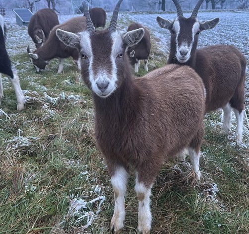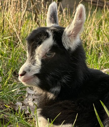 Unsere kleinste Ziege ist am 23.3.2025 geboren. Es ging alles ohne das wir es gemerkt haben- plötzlich war die Kleine da und hopste zusammen mit ihrer Mutter Rosi über die Wiese. Leider ist sie 2025 ein Einzelkind. Vorteil: Wir sind neben Freddy ihre liebsten Spielpartner. Pate: Consti |